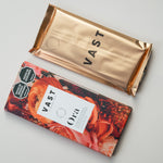 Ora x Vast - Orange Honeycomb. Chocolate oscuro al 72% con toques de naranja y un dulce crocante de miel. Una experiencia única que celebra la riqueza del cacao colombiano y la sofisticación de los sabores.